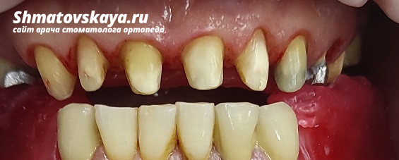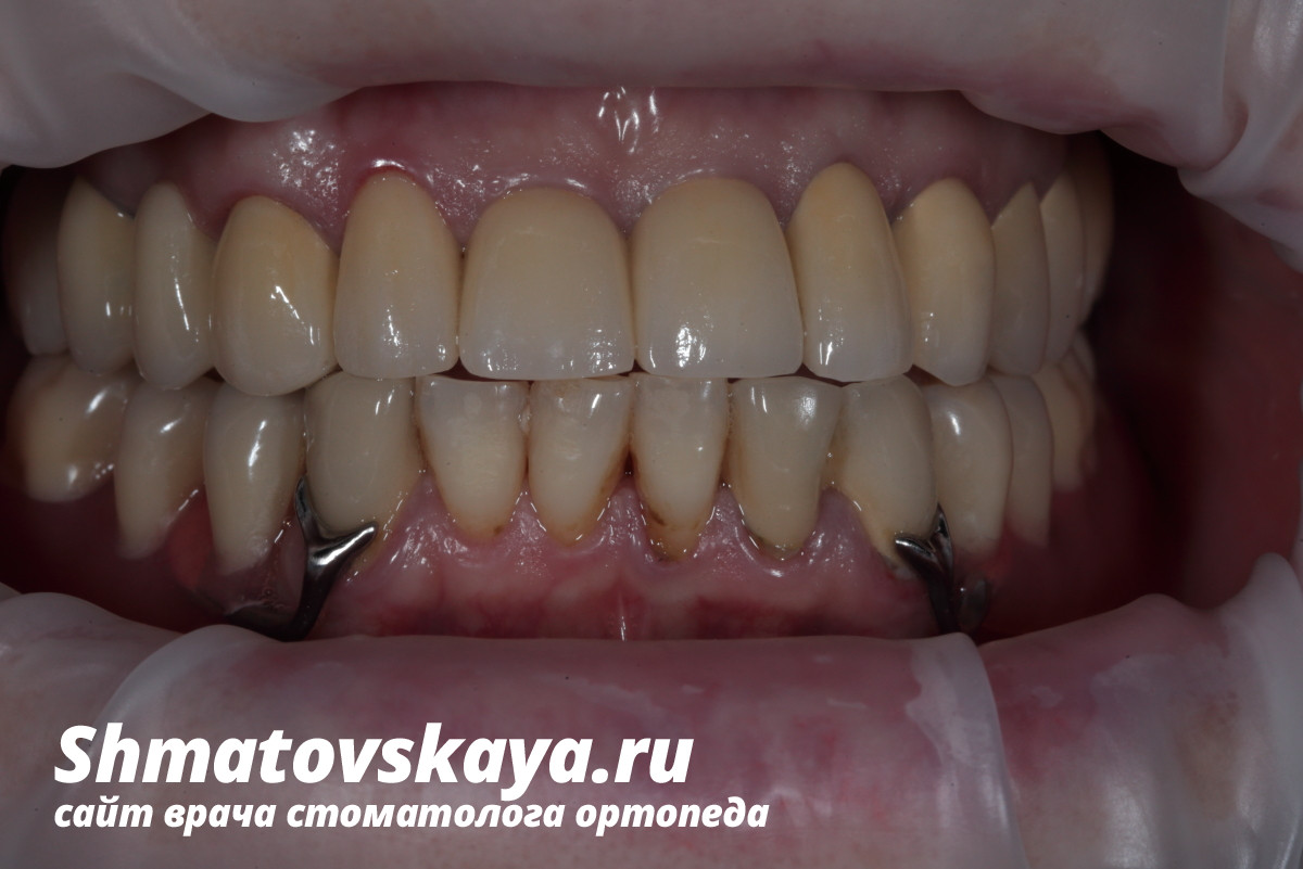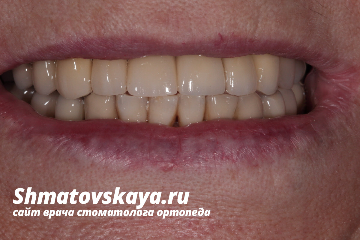 P.S: цвет работы сделан согласно цвету нижних резцов и имеющихся коронок у пациента на нижней челюсти.