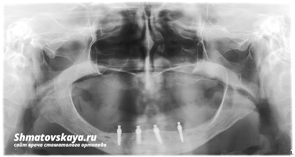 1. На нижнюю челюсть установлено 4 мини-имплантата