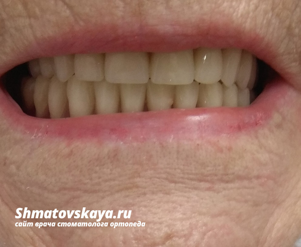 P.S. Учитывая возраст пациентки и соматические заболевания, оптимальным решением будет установка на нижнюю челюсть мини-имплантатов, так как установка таких имплантатов безболезненна, погружаются не глубоко в кость, нет необходимости дожидаться остеоинтеграции, протезирование можно начинать сразу.