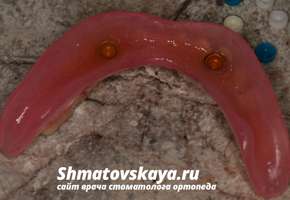 Данная конструкция позволяет избежать опрокидывания, сбрасывания протеза во время жевания, разговора, чихания. Способствует комфортному психологическому состоянию пациента.