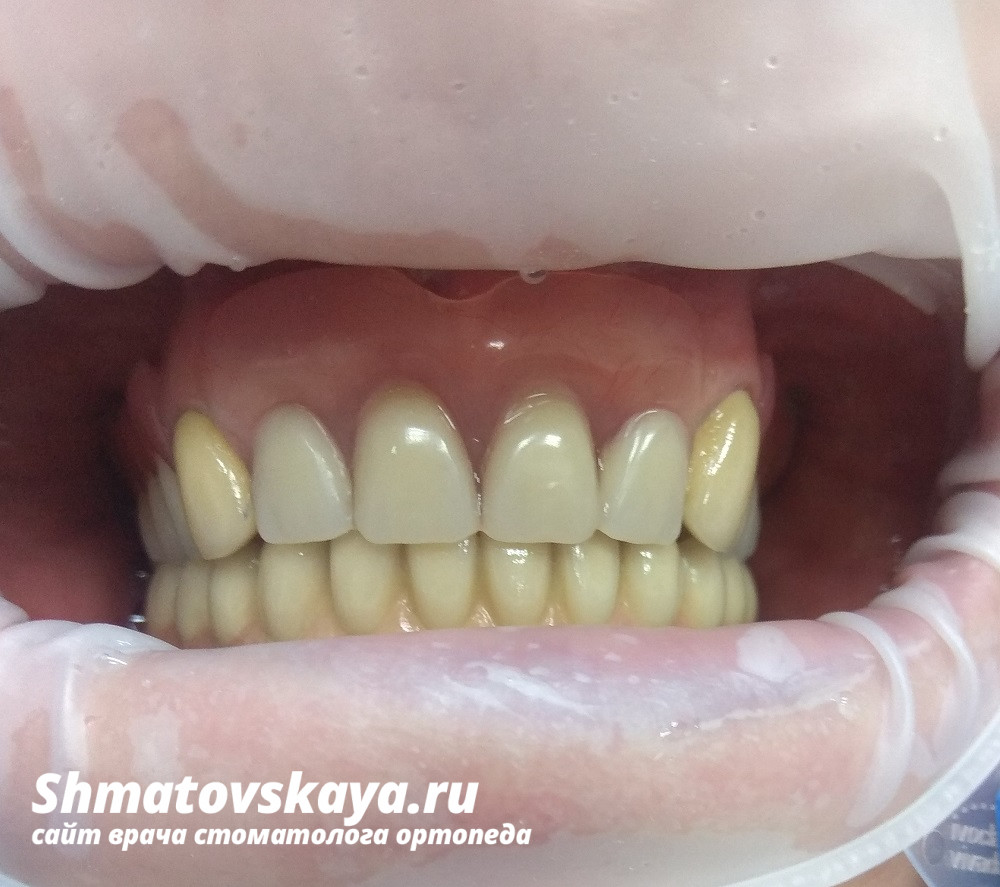 2. Изготовлены металлокерамические коронки на клыки (13 и 23 зубы).