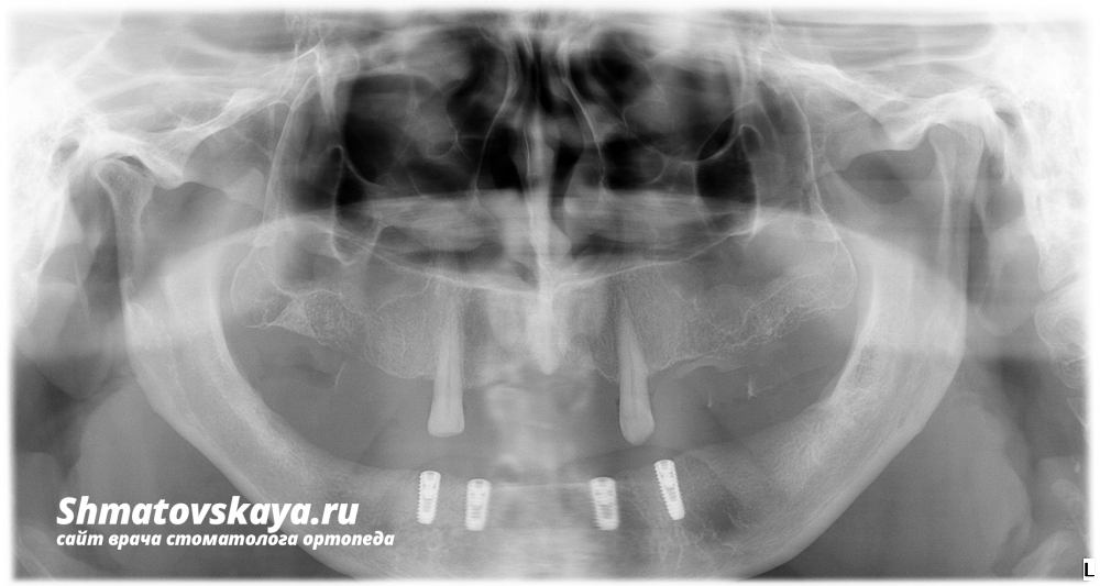 1. На нижнюю челюсть были установлены 4 имплантата системы Osstem.
